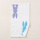 Rainbow Bunny Pattern Kids Monogram Bathroom Towel Set. Washcloth has stripe of rainbow bunnies on two sides. Handtowel has a large blue and large purple bunny on white background. Body towel has pattern of rainbow bunnies with monogram of initial and name. Fun animal pattern. www.SamAnnDesigns.com