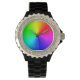 A beautiful rainbow design is bright, bold and beautiful on this watch.