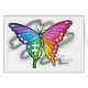 Original drawing by Sandra Gale of a beautiful rainbow shaded butterfly with a puzzle piece shaped hole in its wing. Great design for kids, gardeners, and Autistic awareness promoters.
