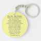 Painting of a rainbow coloured butterfly with a golden outline. The butterfly is on a background of overlapping blue circles which is a tribute to the blue circle symbol for diabetes. The painting features the text of "My Life, My Choice" for diabetes. My Life, My Choice Diabetes can change my body, but I choose my life… I choose to embrace peace. I choose to build friendships. I choose to cherish sweet memories. I choose to accept grace. I choose to have courage. I choose to believe in hope. I choose to welcome faith. I choose to know love. I choose to want my life. Feel beauty, My Life Personalise this inspirational diabetes keychain with your own text, background colours, or other options.