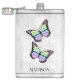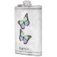 Enjoy your favourite alcoholic beverages anytime with a Rainbow Butterfly Floral Vinyl Wrapped Flask. Flask design features a pair of vibrant butterflies resting on a white floral vine against a light grey grunge background. Additional gift items available with this design as well.