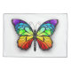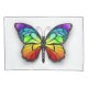 Realistic monarch butterfly in all the colours of the rainbow on a white background. Rainbow butterfly.