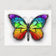 Realistic monarch butterfly in all the colours of the rainbow on a white background. Rainbow butterfly.