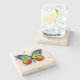 The coasters are gorgeous, a quality feel and heavy weight. They look like a precious archeological find. A rustic stone juxtaposed with a modern floral black and white print. I like the way the print goes slightly imperfect on the cut stone edges giving them a kind-of natural beauty.