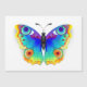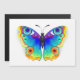 Rainbow, realistic, artistically drawn, bright colours peacock butterfly with textured detailed wings on white background. Rainbow butterfly.