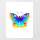 Rainbow, realistic, artistically drawn, bright colours peacock butterfly with textured detailed wings on white background. Rainbow butterfly.