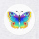 Rainbow, realistic, artistically drawn, bright colours peacock butterfly with textured detailed wings on white background. Rainbow butterfly.