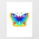 Rainbow, realistic, artistically drawn, bright colours peacock butterfly with textured detailed wings on white background. Rainbow butterfly.