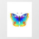 Rainbow, realistic, artistically drawn, bright colours peacock butterfly with textured detailed wings on white background. Rainbow butterfly.