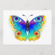 Rainbow, realistic, artistically drawn, bright colours peacock butterfly with textured detailed wings on white background. Rainbow butterfly.