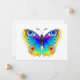 Rainbow, realistic, artistically drawn, bright colours peacock butterfly with textured detailed wings on white background. Rainbow butterfly.
