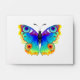 Rainbow, realistic, artistically drawn, bright colours peacock butterfly with textured detailed wings on white background. Rainbow butterfly.