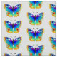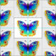 Rainbow, realistic, artistically drawn, bright colours peacock butterfly with textured detailed wings on white background. Rainbow butterfly.