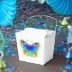 Rainbow, realistic, artistically drawn, bright colours peacock butterfly with textured detailed wings on white background. Rainbow butterfly.