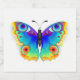 Rainbow, realistic, artistically drawn, bright colours peacock butterfly with textured detailed wings on white background. Rainbow butterfly.