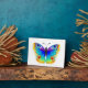 Rainbow, realistic, artistically drawn, bright colours peacock butterfly with textured detailed wings on white background. Rainbow butterfly.