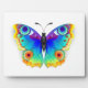 Rainbow, realistic, artistically drawn, bright colours peacock butterfly with textured detailed wings on white background. Rainbow butterfly.