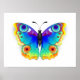 Rainbow, realistic, artistically drawn, bright colours peacock butterfly with textured detailed wings on white background. Rainbow butterfly.