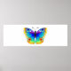 Rainbow, realistic, artistically drawn, bright colours peacock butterfly with textured detailed wings on white background. Rainbow butterfly.
