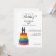 Rainbow cake and elegant script gay wedding invitation
