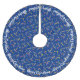 This Christmas tree skirt has a rainbow candy canes. There are two different swirled rainbow candy canes with snowflakes on a blue background. You can personalise this with holiday greetings and change the pattern to be smaller or bigger on the tree skirt.