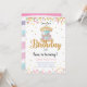 Rainbow Carousel Birthday Invitation with gold glitter, colourful confetti, and a beautiful carousel to make your birthday more special.