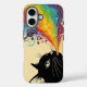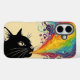 Unleash your vibrant side with this captivating phone case featuring a stylized Black Cat looking up as a torrent of exploding rainbow-colored smoke erupts from its mouth.