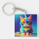 Rainbow Cat with Glasses-47567 Key Ring