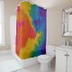 Colourful rainbow gradient designed shower curtain.