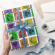 Have some fun with this rainbow coloured chequered pattern wrapping paper! Alternating red, orange, yellow, green, blue and purple textured squares with coordinating stamped fruits on each square. There are cherries, apples, bananas, grapes, blueberries and oranges that are 'stamped' on their appropriate colour. This would be great for birthday gifts or a colourful wrapping paper to give presents to your Gay and Lesbian friends. A colourful and fresh paper to choose for spring and summer parties. There are places to edit a fun short phrase and a person's name. I've displayed this paper as a 'Happy Birthday Joanna,' but you can change this to 'Thank You Jeremy,' or anything that fits your occasion. There is another style of this paper with larger fruit stamps and no editable text areas in this shop.