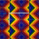 Show your love of colour with a geometric rainbow. Colourful fabric features yellow, orange, and red zigzags (chevron stripes); violet, indigo, and blue diamonds; and orange, yellow, green, blue, and indigo chevrons.