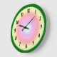 This decorative wall clock features a lovely luminous circular design in pastel rainbow colours of green, yellow, pink, blue and white. The numbers can be cleared if a simpler design is preferred.