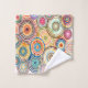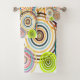 This towel set has a Bauhaus design of concentric circles of many colours overlapping each other.