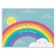 Make your rainbow party decor extra festive with this custom table cloth featuring an original little em illustration of a happy sun, cloud and bright rainbow.