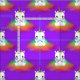 A very cute unicorn fabric pattern with several baby unicorns with wings, all sitting on rainbow-coloured clouds. In the background is a very pretty purple sky.