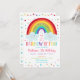 This cute birthday invitation features a colourful rainbow and clouds with rainbow confetti and faux gold glitter accents.