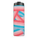 This thermal bottle has a striped design of groups of five stripes crisscrossing each other across the design blue, pink, peach, and coral. If you like the design but prefer different colours, message me.