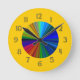 If you love colour, then this is a must-have wall clock! Features a vibrant circle of rainbow hues exploding in the centre of the clock, and around the outer perimeter is an equally vibrant warm mustard yellow! Numerals are easy to read, and have a metallic look.