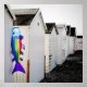 Rainbow fish kite on white beach huts