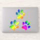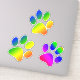 three animal paw prints with rainbow colours. colours include red, purple, pink, blue, yellow, green and orange.