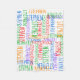 Inspiring bright primary rainbow of awesome colours red orange green blue and purple with cool repeating name pattern. Put the baby boy or kid's name all over this colourful creation of creative typography. Vibrant assortment of fonts with first name or chosen word repeated all over. Celebrate any occasion with a personalised custom name collage gift blanket, perfect for a children's birthday, Custom Christmas gift idea or to celebrate a new baby!