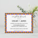 Enjoy this rainbow coloured Square Dot Geometric Pattern couples shower invitation. To honour my many friends and family who belong to the LGBTQ community, I used my photography/design skills to create this fun pattern that utilises the colours from the Pride Flag. I think it makes a fun and whimsical statement on this couples shower invitation.