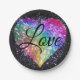 Fun rainbow colours sparkling graffiti sequins heart design paper plates, XOX, love and Kisses- valentine inspired theme design. Customisable!