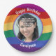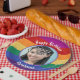 Patterned background in the rainbow colours of red, purple, violet, blue, orange, yellow, and green. Customise with your own photo.