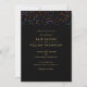 Colourful rainbow confetti sits above your special wedding celebration invitation details set in stylish elegant modern gold typography on a black background. Designed by Thisisnotme©