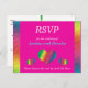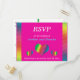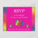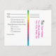 A simple yet elegant and eye-catching design that puts your important information front and centre in an easy-to-read fashion. The solid background bordered by a splash of rainbow colour makes this postcard really stand out in the mailbox. Chose any colour you like for the background (shown here with hot pink on the front and white on the back). The back is pre-formatted for you to enter your return address to send the RSVP back to. Leave the Recipient field blank if you'd prefer to hand-address them. Use the handy provided template fields to quickly personalise with your information. Click "customise further" to change font, size, colours, and positions. Postcards are a very cost-effective way to do RSVPs as you don't need to purchase a second envelope for them and you save $0.20 on every stamp (with U.S. Postage). They are also convenient for the recipient and this one leaves a space for the sender to write in a personal note to you.