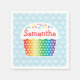 Personalise these rainbow cupcake napkins for a birthday party! Coordinating paper plates available.