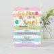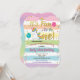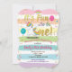 Pastel rainbow and dapping unicorn girl first birthday invitation.
