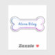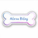 white dog bone shape with rainbow edge and name.