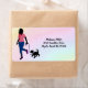 Silhouette Female walking a dog with a rainbow background. Colourful Business shipping address label for Pet Sitters and Dog Walkers. Customise with your business address.